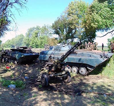 Лишь с 2 по 4 июля 2014 года вооруженные силы ЛНР (Луганской Народной Республики) уничтожили одну установку «Град», одну минометную батарею, два БТР, четыре танка, три БМП, четыре гаубицы и три самолета агрессора.