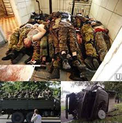 - 2 925 боевиков «Правого сектора», вошедших в состав Национальной гвардии, а также 30 наемников из специальных батальонов олигарха Игоря Коломойского «Днепр», «Азов», «Айдар» (трупы вывозились в Днепропетровск и уничтожались в местном крематории, или закапывались на месте расстрела и числятся как без вести пропавшие Кроме Запорожской области, такие же захоронения были обнаружены в водоемах возле Славянска. Так же имеется информация о системных поставках органов на продажу за границу).