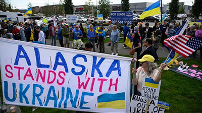 В демонстрации приняли участие несколько сотен человек. Участники митинга держали украинские флаги и различные плакаты. Они скандировали: «Аляска стоит рядом с Украиной!»