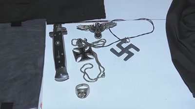 В ходе обысков личных вещей и жилых домов обвиняемых были изъяты принадлежащие им мобильные телефоны, маски, различная электронная техника, предметы с нацистской символикой, огнестрельное и холодное оружие.