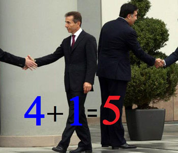 1-polit-anal-NEW-redКак известно, «Грузинская мечта» Иванишвили участвовала  в выборах под номером «41», а «Единое национальное движение» Саакашвили - под номером «5». Произведя элементарное арифметическое действие с этими цифрами, получаешь уравнение, отображающее ситуацию во власти Грузии после парламентских выборов 1 октября 2012 года: 4+1=5