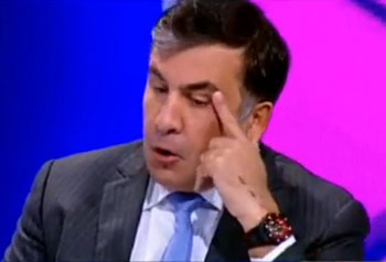 Обещания В.В.Путина повесить его «за два места», ползание по земле в перепуге от звука атакующего российского истребителя – эти, и многие другие, самые позорные для него кадры шли во время ток-шоу на большом экране за спиной разглагольствующего Саакашвили…
